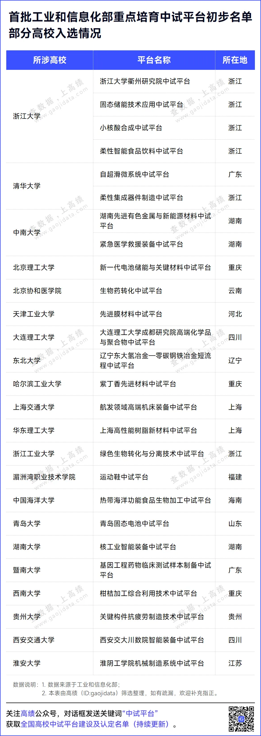 此前,《首批工业和信息化部重点培育中试平台初步名单》公示,浙江大学、清华大学、中南大学等20余所高校有平台入选首批重点培育名单。这些平台分别围绕着新能源、新材料、生物医药等高校强势,产业紧缺的领域开展中试,打通创新链和产业链,让研究成果服务真实世界。