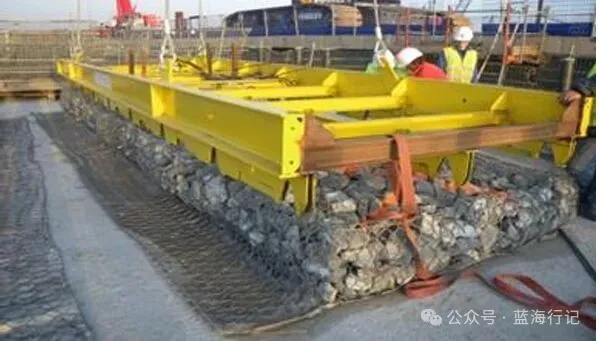 3. 结合船舶起重机与潜水员、起吊框架GPS或遥控潜水器(ROV),将垫体定位在海底,确保精准放置;