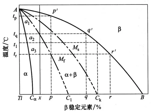 钛合金淬火获得的α'(α'')相、ω相、过冷β相 (亚稳β相),在热力学上是不稳定的,加热到一定温度会发生分解,在转变为平衡相前要经过系列复杂的过渡阶段,最终组织与相图上的平衡组织对应。对于同晶型β合金,分解产物为α+β,对于共析型β合金,分解产物为α+ TixMy。