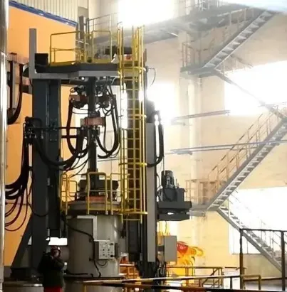 大部分变形钛合金均可用于铸造,其中。单相或者α以相为基并含有少量β相的钛合金(在退火状态下β相的数量一般不超过10%)比较适宜铸造。但是,熔融状态的钛几乎会与所有的耐火材料和气体发生反应,大大增加了铸造的困难,熔化和浇注都必须在惰性气体保护下或真空中进行,不能使用普通耐火材料制成的坩埚。钛合金铸件的熔炼通常采用真空自耗电极电弧凝壳炉,在电弧作用下熔炼钛合金,在强制冷却的铜坩埚内形成凝固层,钛液不直接与水冷铜坩埚接触,可避免来自坩埚的污染。图13为150kg真空自耗电极电弧凝壳炉,其具有结构简单、维持费用低、易大型化等优点,但是,存在对原料的形状有要求、废料难以回收、受熔炼速率制约等缺点。