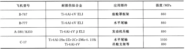 表15 损伤容限型钛合金在国外大型飞机上的应用