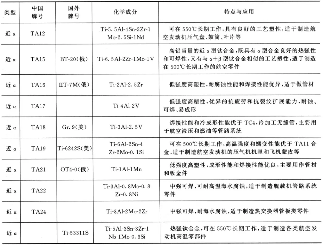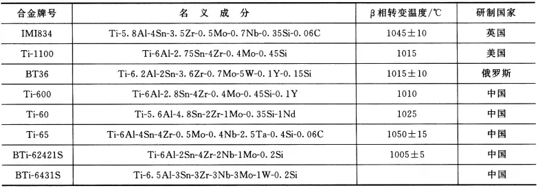 表9 可耐 600℃及以上温度的典型高温钛合金