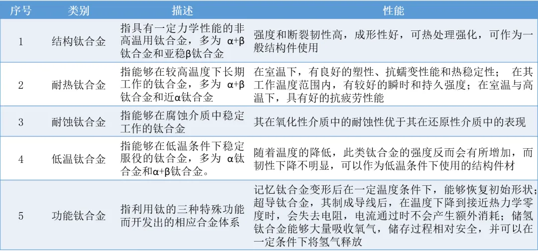 众所周知,钛具有十大特性:①密度小,强度高,比强度大;②耐热性能好;③耐蚀性能优异;④低温性能好;⑤无磁;⑥热导率小;⑦弹性模量低;⑧抗拉强度与屈服强度接近;⑨在高温下容易被氧化;⑩抗阻尼性能低。此外,钛具有三种特殊的功能:①形状记忆;②超导;③储氢。根据其性能特点,可以将钛合金分为结构钛合金、耐热钛合金、耐蚀钛合金、低温钛合金、功能钛合金等几类。