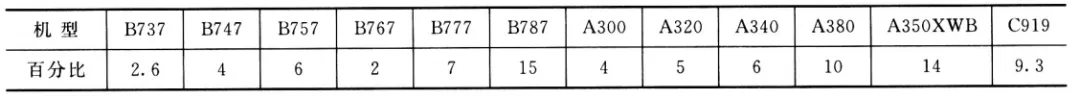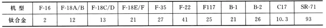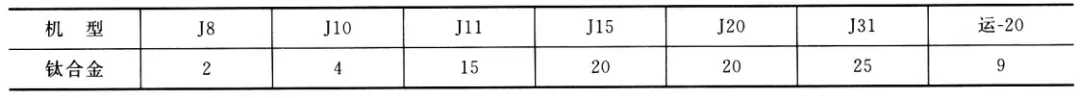 表16为主要商用飞机使用钛材的百分比,B787的用钛量已经达到15%,A350XWB 的用钛量为14%,我国C919飞机的用钛量为9.3%.