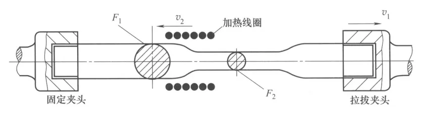 图22为无模拉拔示意图,采用感应线圈或激光使钛材局部加热软化,并施加张力使其变细,优点是不需要拉模和润滑剂,变形速率大、效率高。