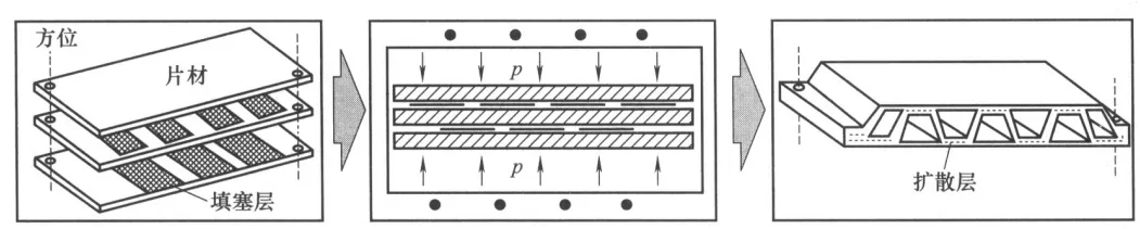 图30 超塑性成形/扩散连接(SPF/DB)制作格状结构件示意图