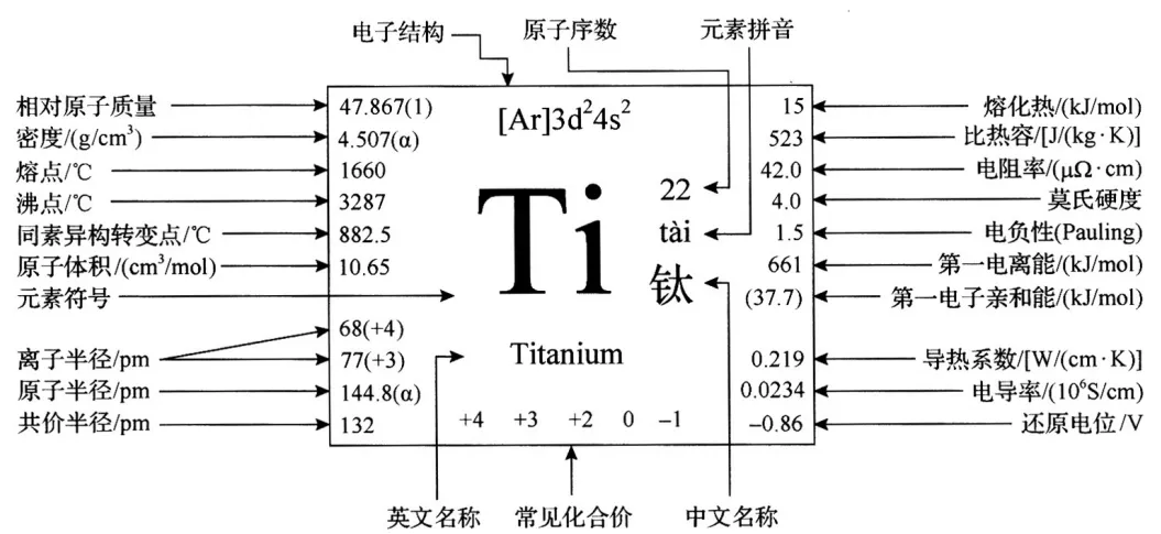 钛,是一种重要的金属元素,其物理和化学性质如图1所示。钛在元素周期表中的原子序数为22(第4周期,第NB族),具有银白色金属光泽,密度为4.507g/cm', 熔点为1660℃,沸点为3287℃,具有熔点高、密度小、强度大、延展性好等多种优良特性,是一种重要的工业材料。
