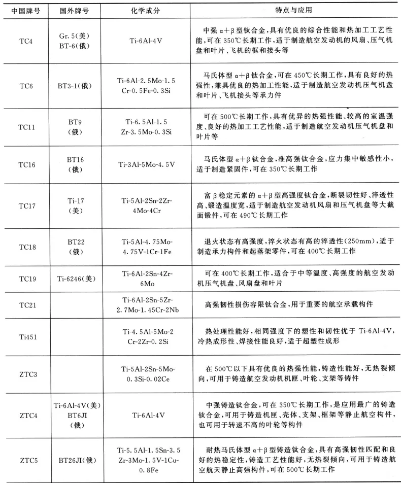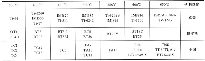 表21 我国航空发动机在役和在研的主要高温钛合金