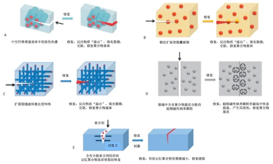 "外援型自修复机制,其自修复过程依赖于两种成分的组合,即修复剂(单体..."