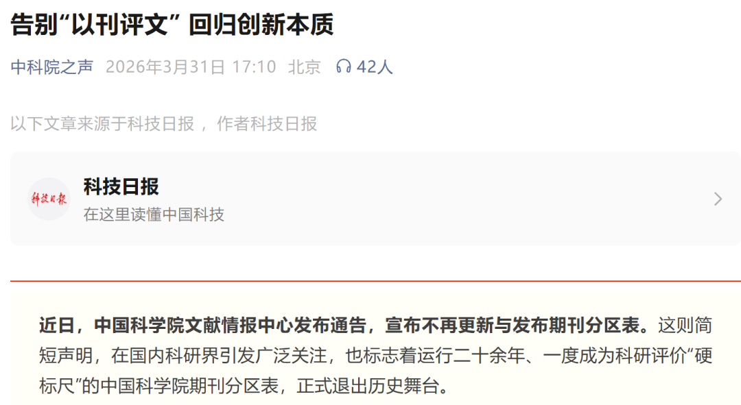 中国科学院官方:中科院分区表,正式退出历史舞台,“以刊评文”时代结束